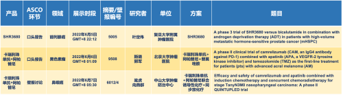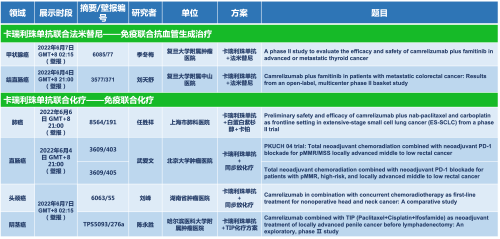 卡瑞利珠单抗联合金年会- 金字招牌医药的另一款创新药法米替尼在甲状腺癌和结直肠癌领域有2项研究被接收为壁报,另有卡瑞利珠单抗联合化疗的4项研究在肺癌、结直肠癌、头颈癌和阴茎癌领域的研究被接收为5份壁报。